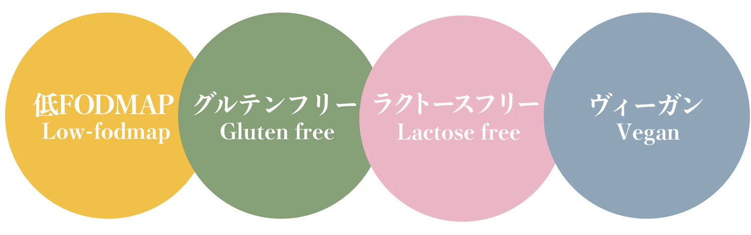小麦粉、牛乳、甜菜糖を使わないことで低FODMAPにしています。