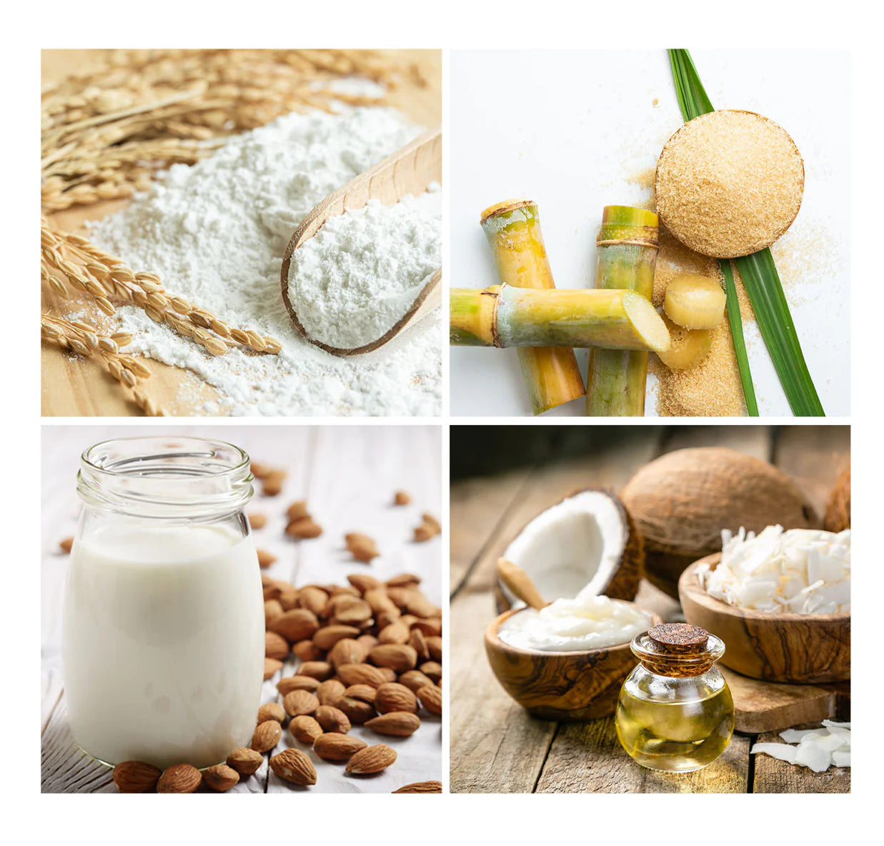 国産の高品質な米粉、ホワイトソルガム、有機コーンスターチ、原材料がアーモンドだけのアーモンドミルク、サトウキビ原料の「島砂糖」、オーガニックココナッツオイルなどを使用しています。 -